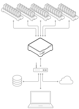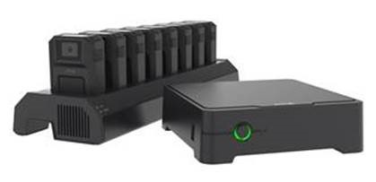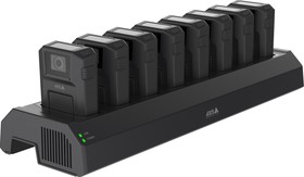 Další součásti systému je dokovací stanice. Ta má za úkol dobíjení kamery a take přenos záznamu do systémového kontroléru. K dispozici jsou dokovací jednotky pro jednu a osm kamer.